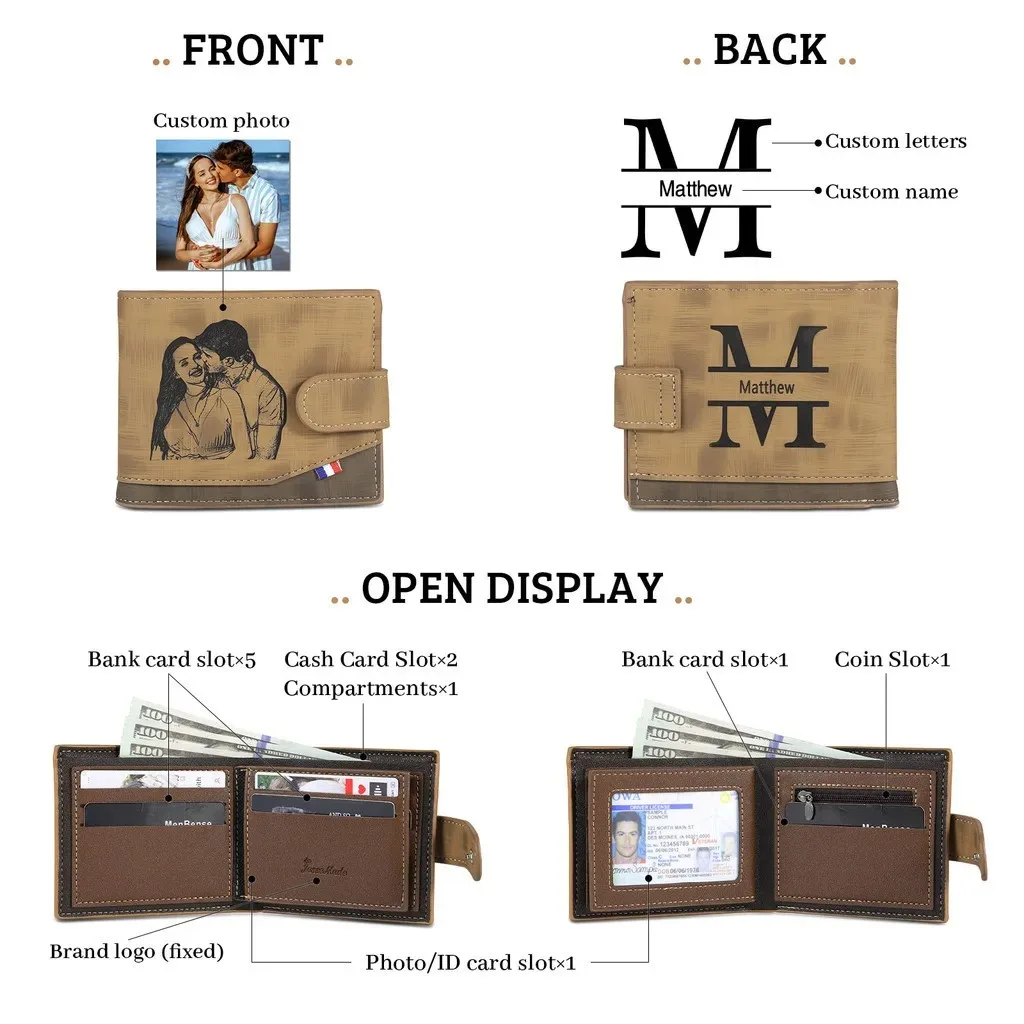 Personalized Picture Wallet for Men Gift for Men Customized Engrave Wallet with Name Him Birthday Anniversary Gift for Husban