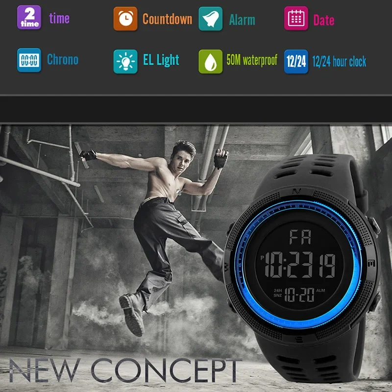 YIKAZE Digital Men Watch Military Sports Wristwatch Multifunction Waterproof Sport Watches Kids Student Electronic Watch for men Gifts